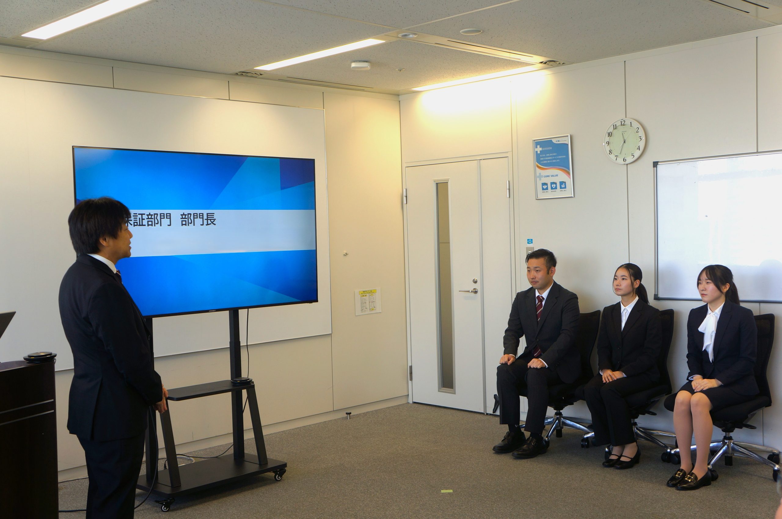 司会による内定者3名の紹介の後、配属予定先の部門長から、温かい激励と今後への期待を込めたメッセージが贈られました。